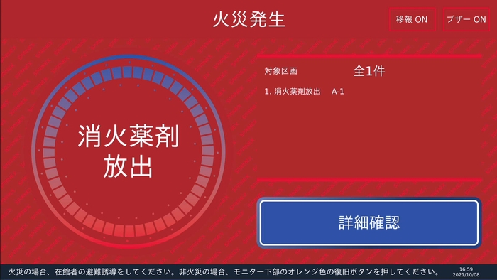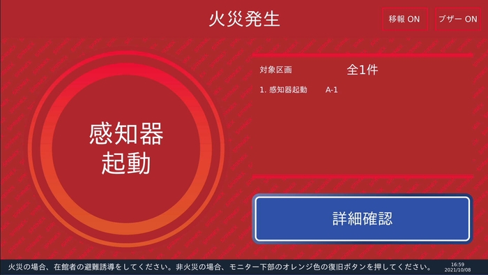 受信盤ユニットにはタッチパネル式モニターを採用しました。当該区画名称が瞬時にモニターに表示されるため、素早い初動対応が可能です。