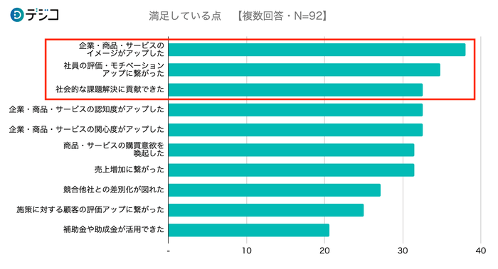SDGs関連施策実施で満足している点の1位は「イメージアップ」