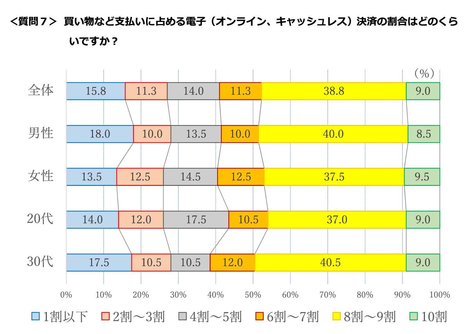 <質問7> 買い物など支払いに占める電子(オンライン、キャッシュレス)決済の割合はどのくらいですか?