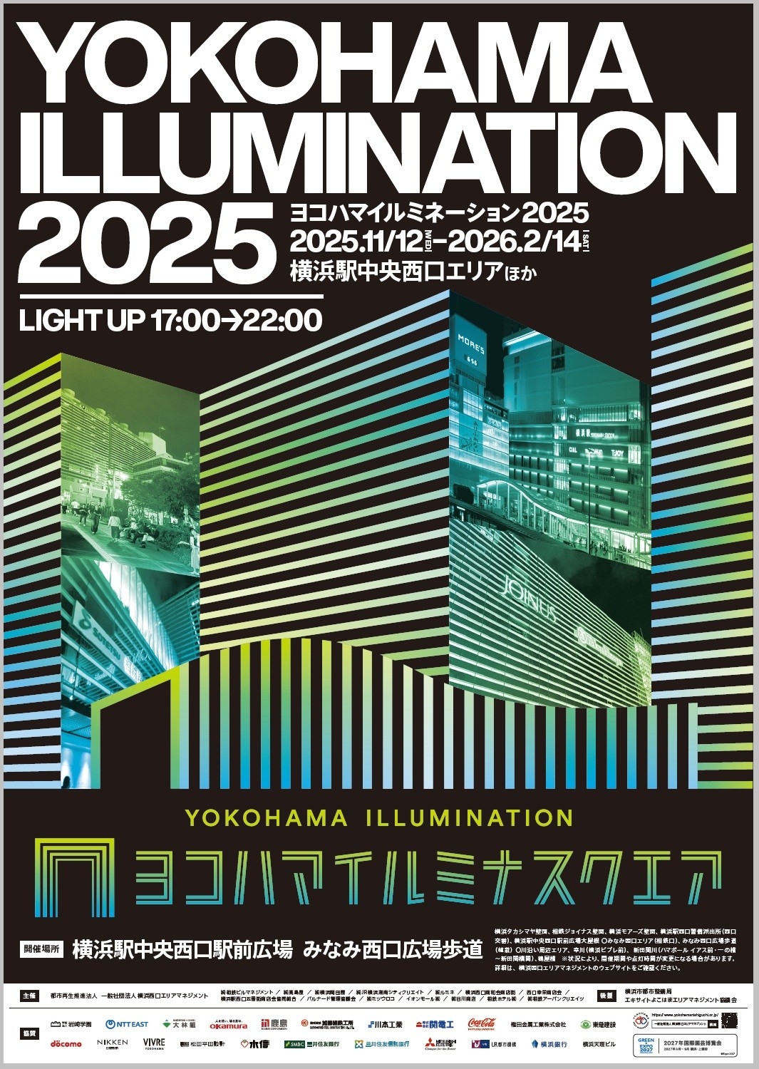 (一社)横浜西口エリアマネジメント(所在地・横浜市西区、代表理事・左藤 誠)は、2025年11月12日(水)から2026年2月14日(土)まで、横浜駅西口周辺(以下、同エリア)で、「ヨコハマイルミネーション2025 “ヨコハマイルミナスクエア”」を開催します。
