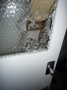 とにかく割られた窓ガラスをなんとかしないといけません。