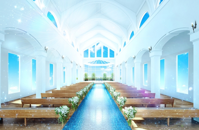 青空が広がり、煌めく幸運のバージンロード 南港の空に一番近い「天空の教会」が大阪に誕生!