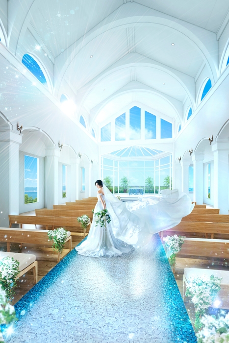 全面ガラス張りにすることで青空が更に広がり、降り注ぐ自然光が優しく祝福の時を包み込みます。