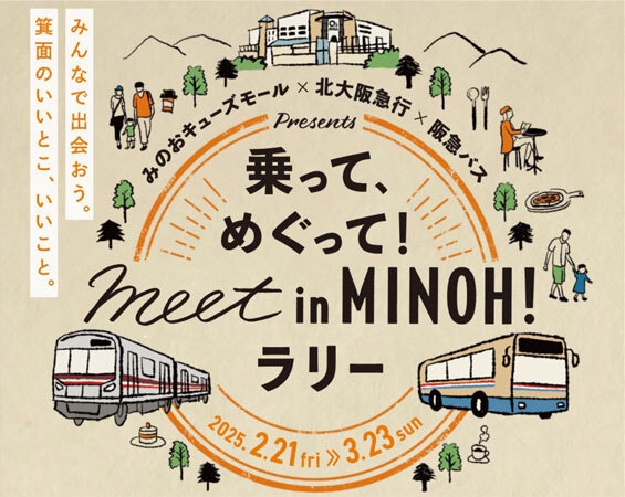 東急不動産SCマネジメント株式会社(本社:東京都渋谷区、代表取締役社長:大久保 次朗)、北大阪急行電鉄株式会社(本社:大阪府豊中市、代表取締役社長:奥野 雅弘)、阪急バス株式会社(本社:大阪府豊中市、代表取締役社長:三田 和司)は、地域の活性化や公共交通機関の利用促進を目的に、2025年2月21日(金)より、「乗って、めぐって!meet in MINOH!ラリー」を開催いたします。