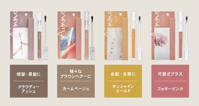 01 クラウディーアッシュ/02 カームベージュ/03 サンシャインゴールド/04 フォギーピンク
