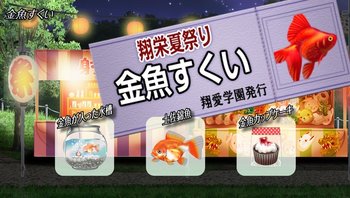 翔栄町の夏祭りイベントでは、神社にある日本庭園に縁日の屋台が立ち並び、アイテムやミニゲームチケットが販売されます。