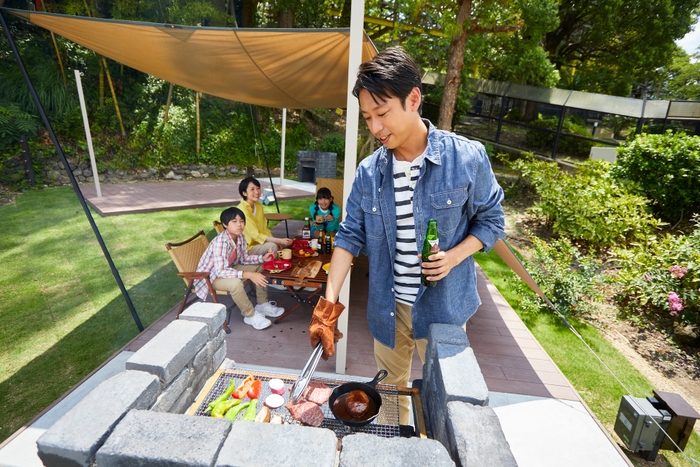 ひらかたパークの中心にあるプライベートな貸切スペース「Outdoor BBQ Terrace」は、BBQはもちろんのこと、読書やお昼寝などをして、のんびりデイキャンプを楽しんだり、遊園地の活動拠点として活用したりと、思い思いの1日をお過ごしいただけます。
