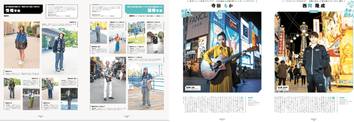 大学案内は通常、大学側が事前に依頼した学生への取材が中心ですが、本学では大学が見せたい姿ではなく、リアルなキャンパスの雰囲気を伝えるため、ストリートスナップを得意とする雑誌社とコラボして「ゲリラ取材」をメインとする大学案内を作成しています。この『TOKYO GRAFFITI』とのコラボは今回で10年目となり、編集スタッフが大阪に長期滞在して、半年間で全6キャンパス1,082人の学生を撮影しました。教育や研究内容、就職、留学など、受験生が必要とする情報はデータ集として巻末別冊に掲載しています。さらに16冊(15学部と短期大学部)の『学部案内』やWEBサイトからも詳しい情報を入手でき、志望校を検討中の受験生から志望校が決まっている受験生まで、それぞれのニーズに応えられる媒体を広く揃えています。