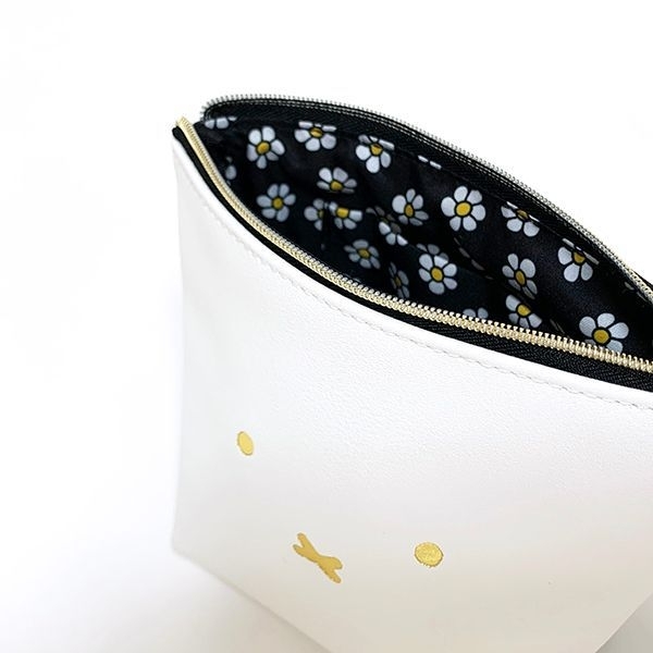 なぜかお澄まし顔に見えるコスメポーチ。ホワイトとグレーの2色。