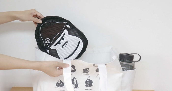 洗濯OKなメッシュ生地。使った後のハットやマットを中に入れて
