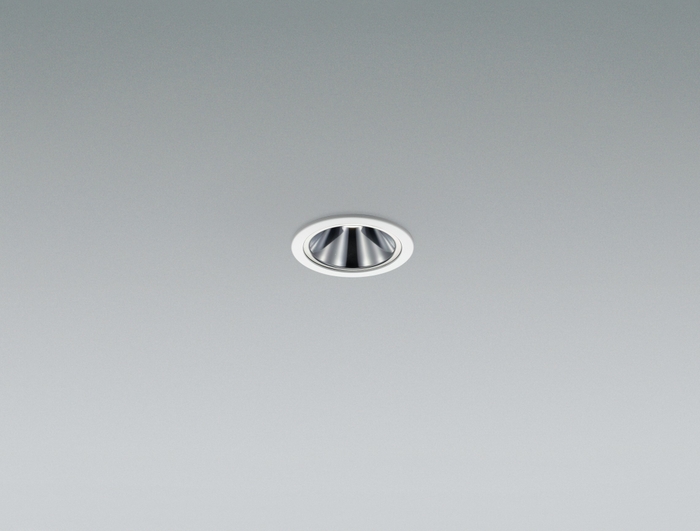 この度の新製品は、グレアカットアングルを深くし、グレアレス鏡面ミラーとワイド配光レンズで眩しさを軽減させ、どの角度から見てもグレアを感じにくい設計のベースダウンライトとなっております。さらに、従来のグレアレスダウンライトより約20%効率をアップさせ、広くフラットな配光に設計することで、しっかりと明るさを確保しつつ、水平面照度のムラを減らし、空間全体を効率よく照らすことが可能になりました。そのため、働き方や業務内容に応じて部署ごとにレイアウトを変更するオフィスや、フリーアドレス方式を採用したオフィス空間で活躍いたします。またWELL認証※1の加点項目である「照明のグレアの管理」においての基準値もクリアしており、オフィス空間におけるグレアを低減し、心地良い視環境の実現を可能にいたしました。