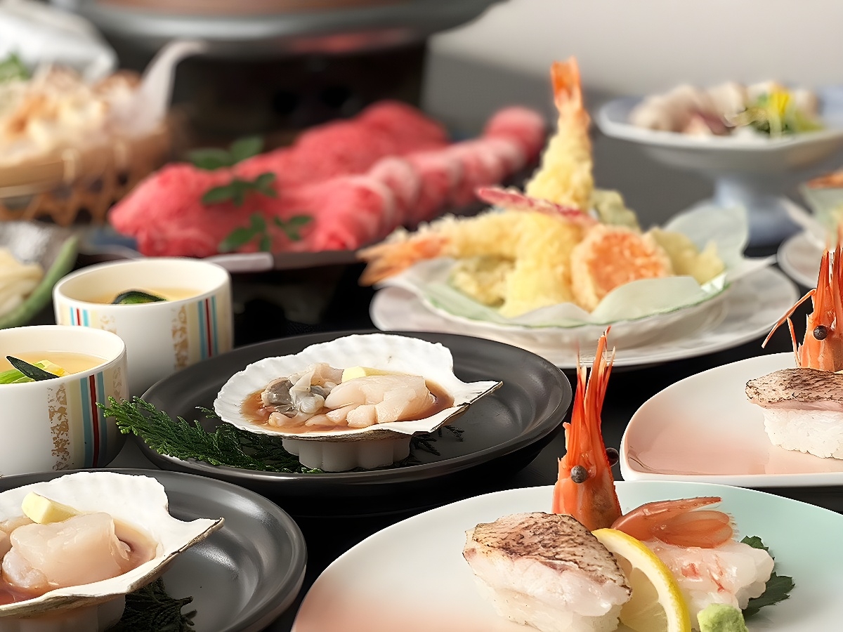 海・山から届く旬の素材を使った板長自慢の料理をご用意します。