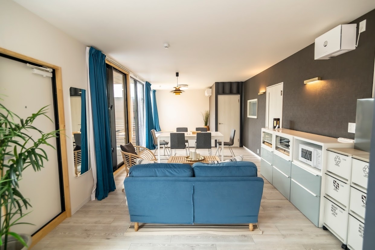 ご家族や大切なパートナーとのご旅行はもちろん、移住を考えている方のご利用があります。戸建て住宅のようにキッチンやバストイレ、洗濯機等の家電も完備しておりますので長期滞在も快適です。