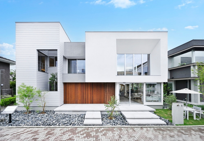 大開口を積極的に取り入れながらも、プライベート性にも配慮したダイナミックでスタイリッシュな外観としました。シンプルな中にナチュラルテイストを盛り込み、ひときわ目を引くデザインとなっています。
