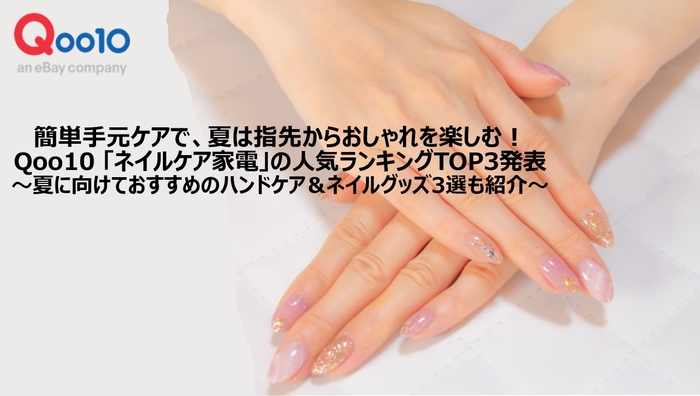 インターネット総合ショッピングモール「Qoo10」を運営するeBay Japan合同会社(本社:東京都港区、代表取締役:グ・ジャヒョン)は、夏に向けてネイルの需要が高まってくるこれからの季節に、Qoo10の「ネイルケア家電」カテゴリーの販売個数ランキングTOP3として人気を集めているアイテムを発表します。