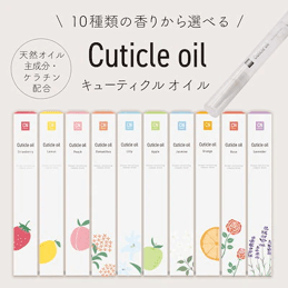 爪の主成分であるケラチン配合&天然オイルがメイン成分のペンタイプのキューティクルオイル。フルーツや花など10種類の香りから選べるので、その日の気分で選んでも。ジェルやマニキュアをオフした後の爪のケアとしてはもちろん、バッグの中やデスクの上にスタンバイさせて、乾燥が気になった時や爪のダメージを感じた時にはいつでも手軽に使えます。香りを楽しみながら保湿もまめにできるお助けアイテム。