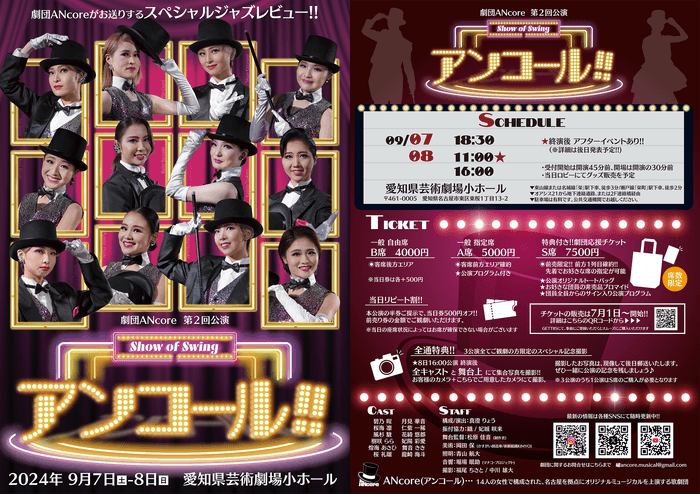 私たちは名古屋でオリジナルミュージカルを公演する社会人歌劇団、劇団ANcore(アンコール)です。