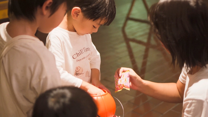 アメリカのハロウィンでは、子どもが悪魔やお化けの仮装(コスプレ)をして、近所の家にお菓子(キャンディ)をもらいに行きます。今回の特別フェアでは、この習慣にならい、小学生以下のお子さまにキャンディをプレゼントします。