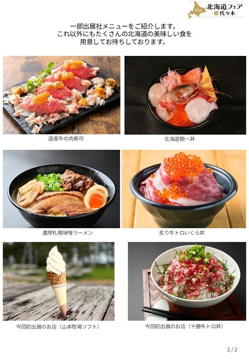株式会社北日本広告社(本社:北海道札幌市、代表取締役社長:竹ヶ原 貴志)は、2025年10月2日(木)~10月5日(日)の4日間、代々木公園で「第35回 北海道フェアin代々木」を開催いたします。例年20万人以上の方が来場する、北海道の味覚『秋の風物詩』として親しまれているイベントが、今年はさらにパワーアップして開催されます。