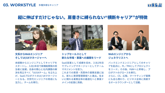 そこで、選考に参加される方々とのミスマッチを減らし、入社後の働き方や活躍を具体的にイメージしていただくため、事業内容に加えて、これまで伝えきれなかった社員の雰囲気やカルチャーにフォーカスした採用ピッチ資料を制作・公開いたしました。
