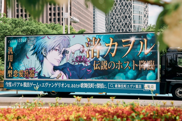 イベント中に登場するホストクラブ「クラブ・ゼーレ」の宣伝という設定で実施された「渚カヲルアドトラック」。「クラブ・ゼーレ」の代表である、「伝説のホスト 渚カヲル」の撮り下ろしビジュアルが「汎用人型恋愛兵器」という二つ名と共に配され、「交響曲第九番 歓喜の歌」をBGMに歌舞伎町を走行し、その目撃情報がSNSの話題をさらいました。