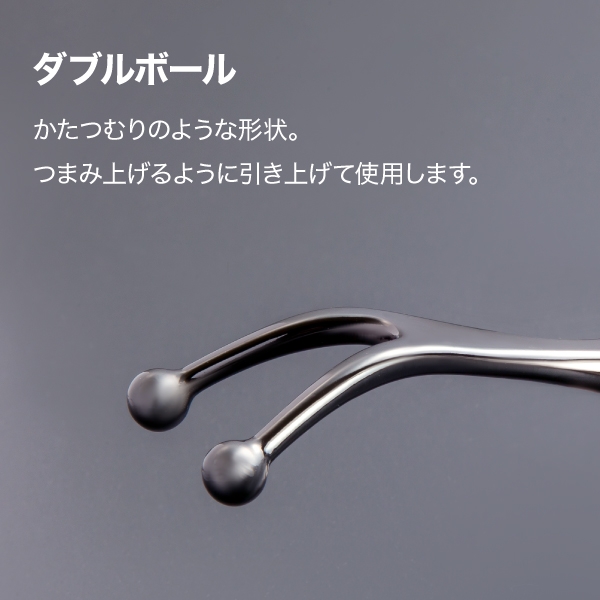 生え際から側頭部、頭頂部へつまみ上げるように引き上げるダブルボール。頭皮とつながっている顔の筋肉も意識しながら引き上げるように使用できます。
