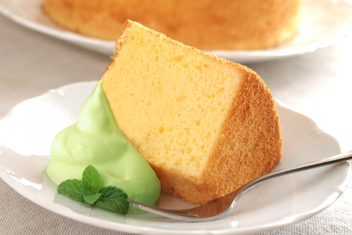 東北・宮城を代表する郷土料理ずんだ。甘すぎずさっぱりとしたクリームはシフォンケーキとの相性抜群です。