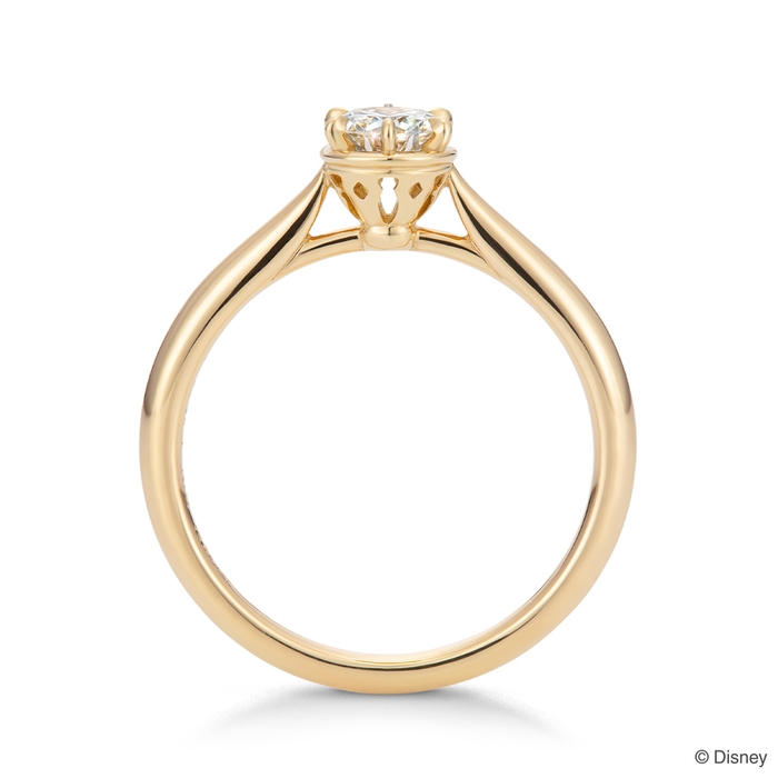フォーマルに身に着けやすい一粒ダイヤの婚約指輪です。側面のデザインは、「アラジン」が「ジャスミン」と一緒に「魔法のじゅうたん」に乗って旅をするきっかけになった宮殿のバルコニーをイメージしています。