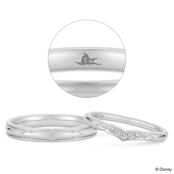 内側には「魔法のじゅうたん」に乗った「アラジン」と「ジャスミン」の刻印を入れ、物語の世界観を演出しています。