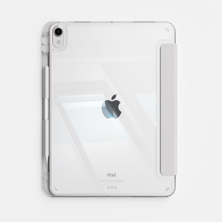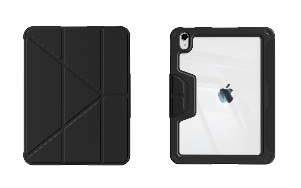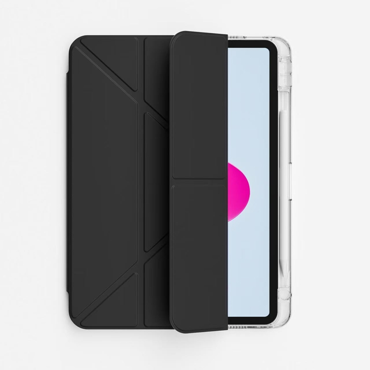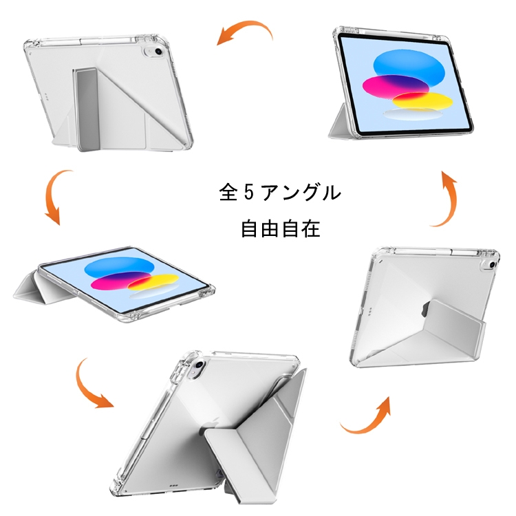 ユニークなY字フォールドデザインのフロントカバーを備えたクリアバックケース。