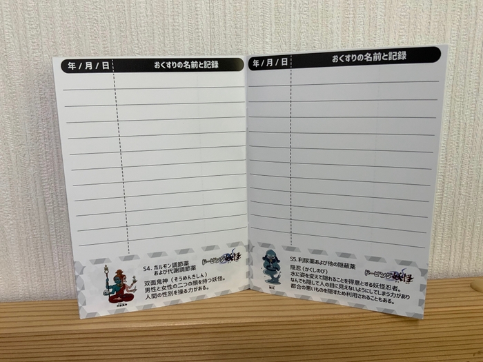 ・お薬手帳ページにはドーピング禁止物質を楽しく学べる「ドーピング妖怪」のイラスト付き