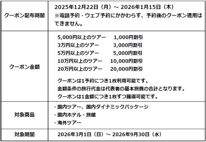 総額1億円 旅行割引クーポンプレゼント 国内旅行・海外旅行「福たびフェア2026」 12月22日(月)スタート | NEWSCAST