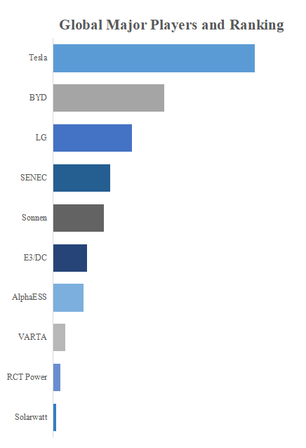 YHResearchのトップ企業研究センターによると、家庭用蓄電池の世界的な主要製造業者には、Tesla、BYD、LG、SENEC、Sonnenなどが含まれている。2023年、世界のトップ3企業は売上の観点から約41.0%の市場シェアを持っていた。
