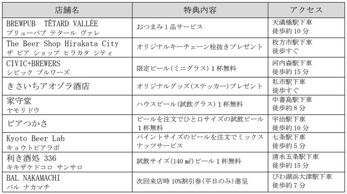 春から夏にかけて、ビールが美味しい季節。京阪沿線の醸造所をめぐり、各店舗のこだわりのクラフトビールをお楽しみください。詳細は以下のとおりです。