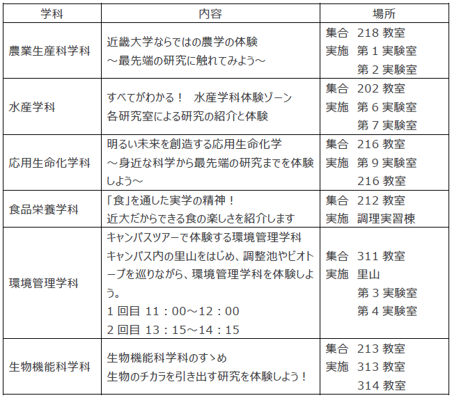 近畿大学農学部(奈良県奈良市)は、令和6年(2024年)8月4日(日)、9月7日(土)に、奈良キャンパスにてオープンキャンパスを開催します。農学部6学科の教員や学生による体験イベントを通して、農学部でのリアルな学びをお伝えします。また、学生生活や入試、就職に関する疑問・質問に答える各種相談コーナーも設置し、高校生の進路決定をサポートします。
