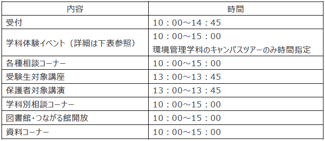 対象 :受験生、保護者(入場無料、事前申込不要)