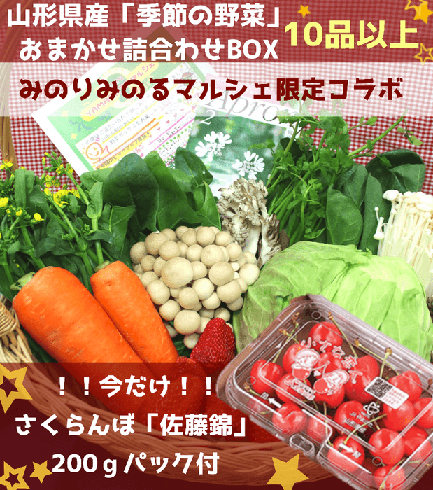2.内 容:10種類以上の野菜が入った野菜BOXをさくらんぼ入りでお届けします。