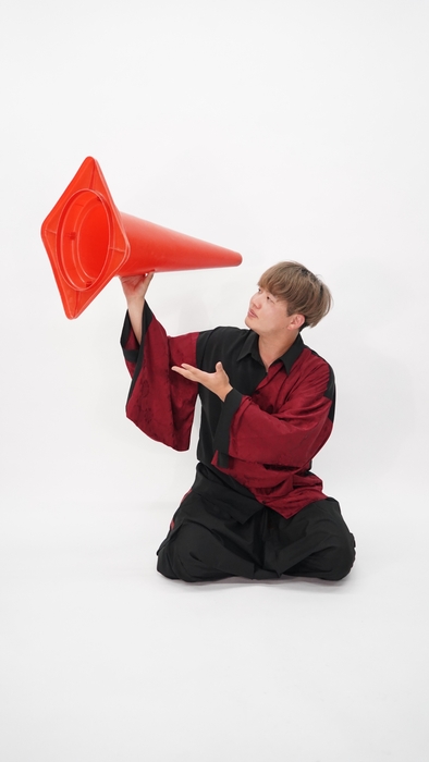 工事現場などに使われるカラーコーンを自由自在に操り、ダイナミックでパワフルなパフォーマンスを得意とする。