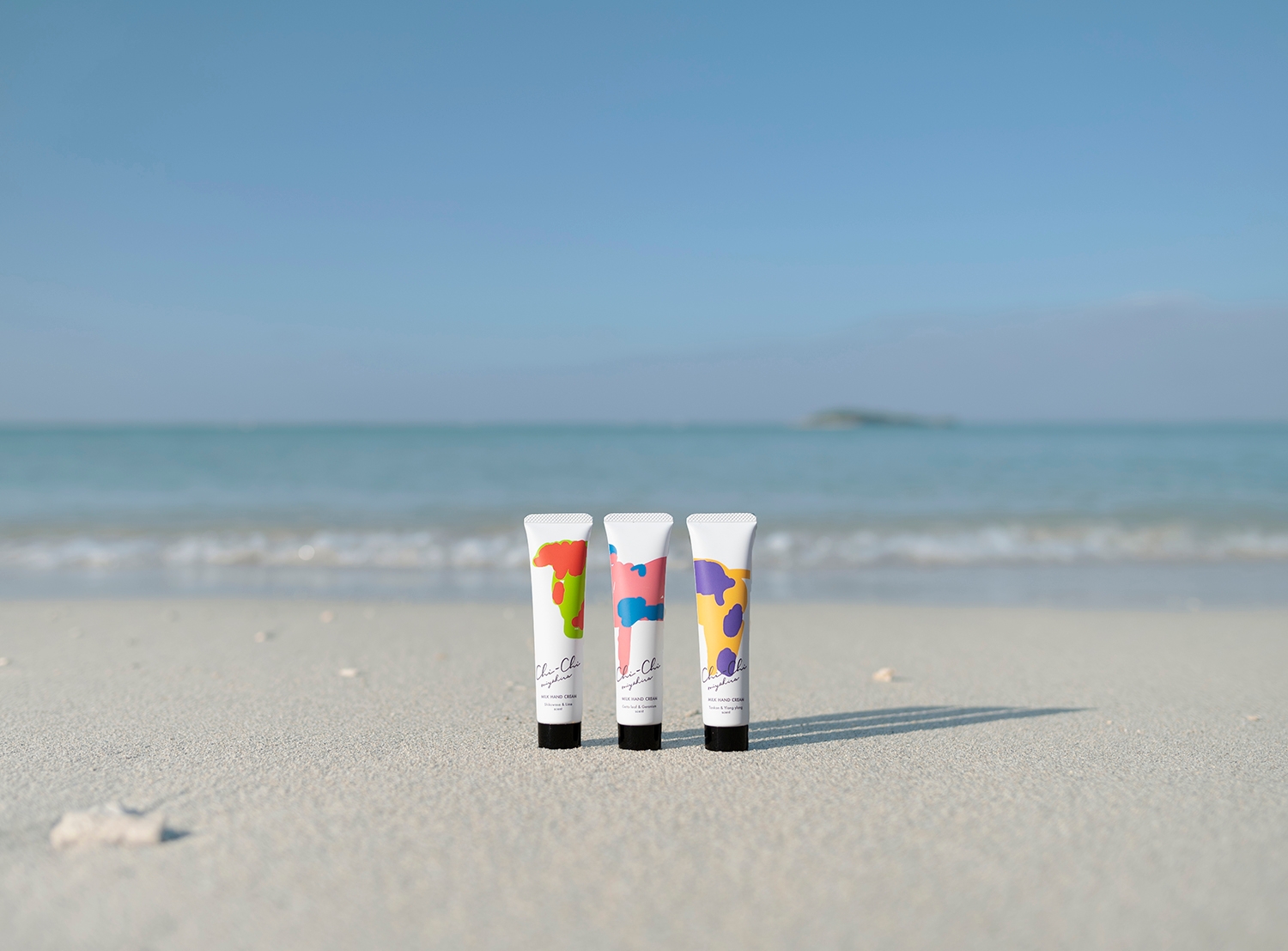 冬場の余剰乳を上手く活用できないかという考えから生まれたChi-Chiミルクハンドクリームは、宮平牛乳から抽出したホエイを増量し、沖縄の環境でも使いやすいさっぱりとした使用感、敏感肌の方も使用できる8つのフリー処方にこだわりリニューアルをいたしました。沖縄をイメージし、沖縄旅を追体験できるようなワクワクする組み合わせの香りや、イラストコンペティションにて選考されたイラストを使用し、パッケージも新しく生まれ変わりました。