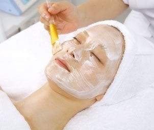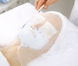 清潔にした肌に、石膏パックベースクリームを塗布します。