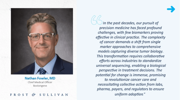 この変革には、治療の決定において生物学的視点を可能にするユニバーサルシーケンスを標準化するための、業界を超えた協力的な取り組みが必要である。