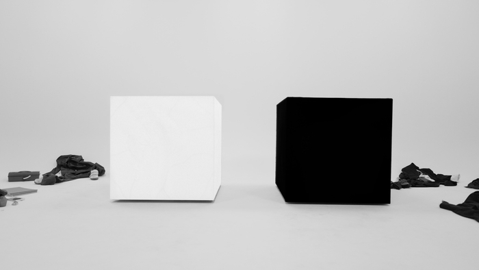 部屋の中央には、「シロ」と「クロ」の怪しげな箱が置かれている。