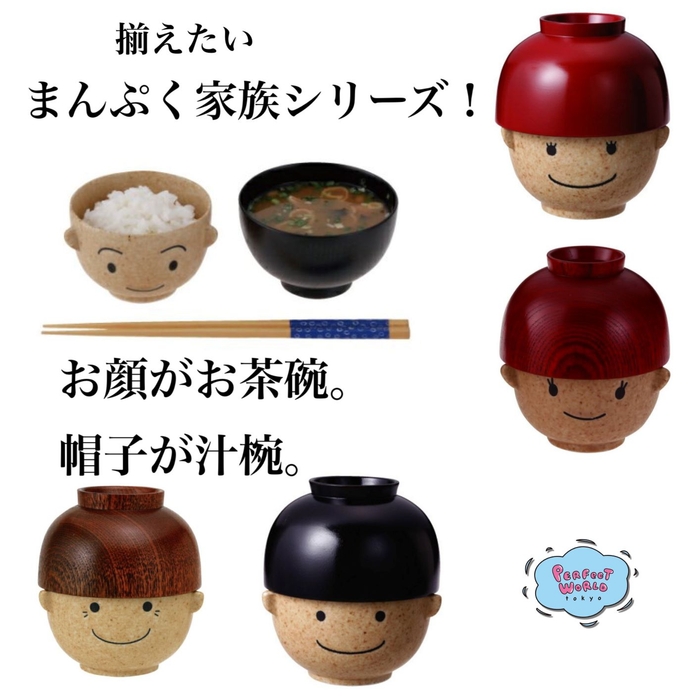 これはさすがに癒される!家族でカップルで揃えたいまんぷく家族シリーズ。お顔がお茶碗、帽子が汁椀になっちゃった!
