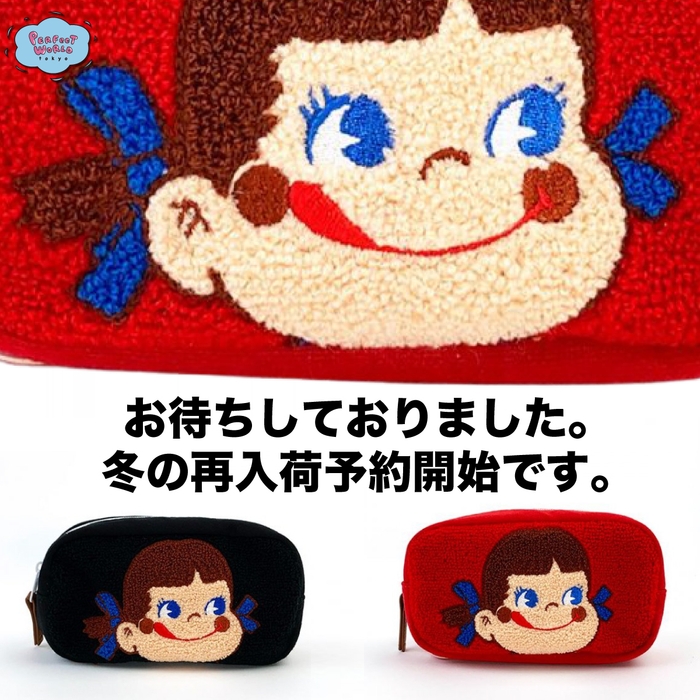 速報 再入荷予約だって!?ペコちゃんのサガラ刺繍ポーチが再びやって来る。このニュースよ、届け全国のペコちゃんファンに!
