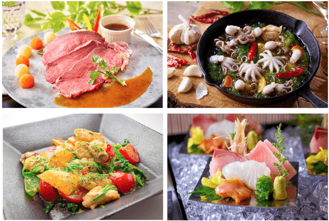イタリア語で「レストラン」を意味するリストランテ、スペイン語で「市場」を意味するメルカドの2つの単語の組み合わせが表す通り、イタリアやスペインなど地中海地方の料理をたっぷりご用意し、これまでの大江戸温泉物語のバイキングレストランとはまた違った雰囲気でおもてなしします。