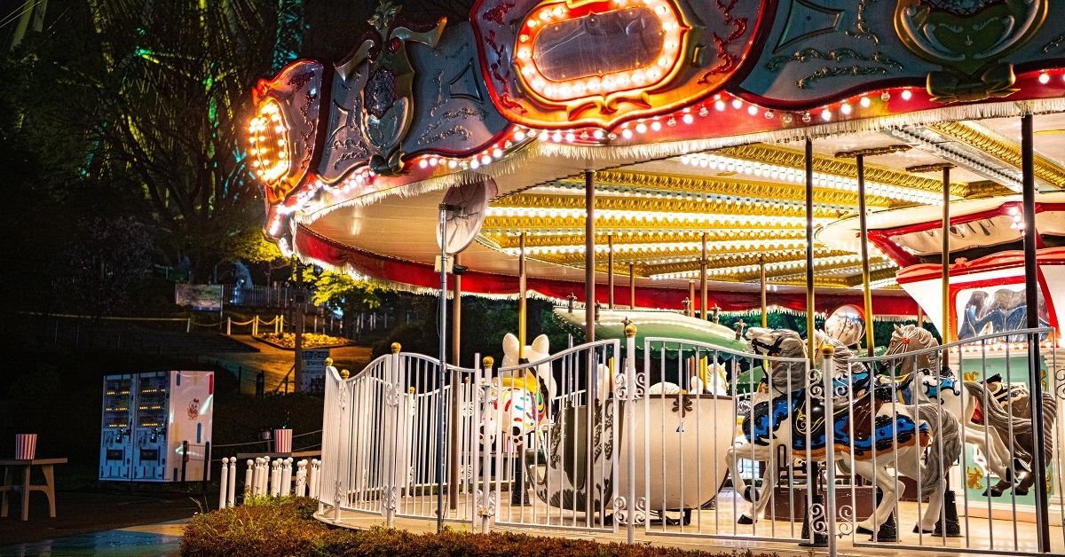 閉園後の遊園地で行われ、観るものすべてを笑顔にする。