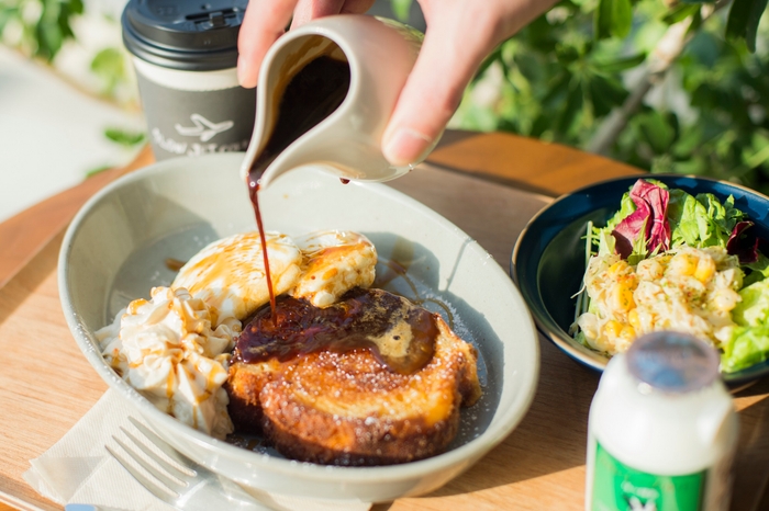 BEBに来たら、時間や計画にとらわれず、その時の気分でやりたいことをやる、そんな「ルーズ」な過ごし方ができます。チェックアウト時間は「だいたい11時」なので、夜中まで盛り上がり過ぎて朝寝坊してしまっても大丈夫。遅めの朝食には、ボリューム満点のクロックムッシュ、こだわりのブリオッシュキャラメルマキアートなど、「PLAYatre TSUCHIURA」内の店舗で BEB5土浦のゲスト専用のメニューを用意。食べたいものが決まったら店舗へGo!