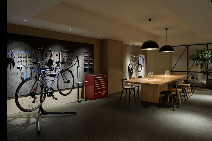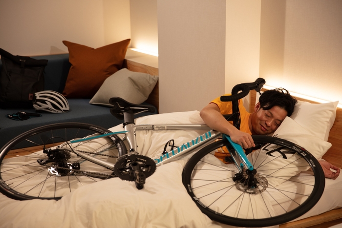 パブリックスペースは、自転車を持って移動しやすい、ゆとりある設計。滞在中、いつでも自由に利用できる整備コーナー「サイクルスペース」もあります。サイクリストが集まるので情報交換の場としても最適!工具の貸し出しも行っているので手ぶらでお越しいただけます。また、片時も自転車と離れたくない人には「サイクルルーム」がおすすめ!客室に自転車を持ち込めるだけでなく、サイクルルームに泊まった人だけがレンタルできる滞在着や、愛車(自転車)と添い寝するための寝具セットもあるので、自転車への愛が止まらない人はぜひ!