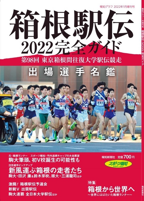 スポーツ報知を発行する報知新聞社(代表取締役社長・依田裕彦)は12月6日(月)から報知グラフ2022年1月増刊号「箱根駅伝2022完全ガイド」を発売します。日本のお正月をワクワクさせる、「第98回東京箱根間往復大学駅伝競走」出場校特集号。関東学生連合を含めた全21チームの顔写真付き選手名鑑、チーム分析をメインに、2年連続の頂点を目指す駒大・田沢廉選手&鈴木芽吹選手、スーパールーキーの東洋大・石田洸介選手、国学院大・平林清澄選手ら活躍が期待されるランナーをピックアップ。東洋大時代に箱根駅伝に出場した、スポーツ報知・竹内達朗記者による大会展望は必読です。