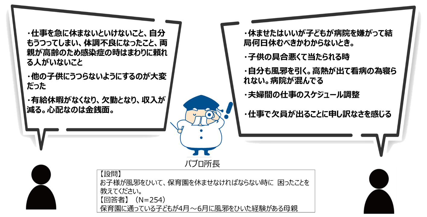 昨年と同じくお子様が保育園を休んだ際のお困りことをヒアリング。